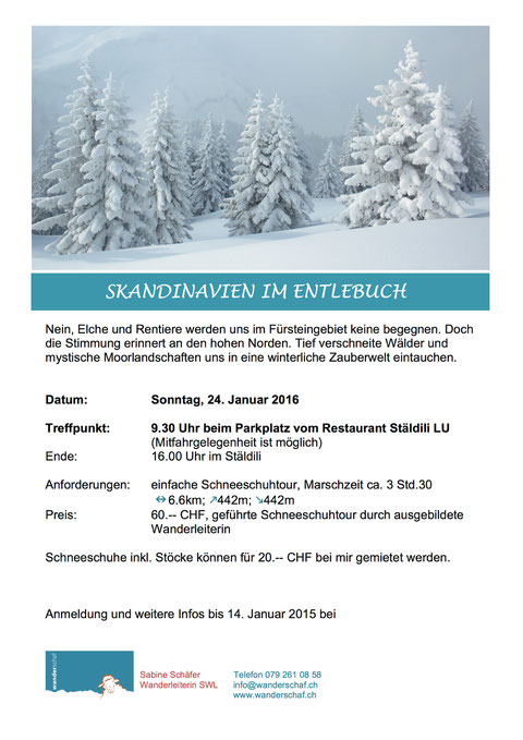 Sabine Schäfer, Tel. +41 79 261 08 58 info@wanderschaf.ch