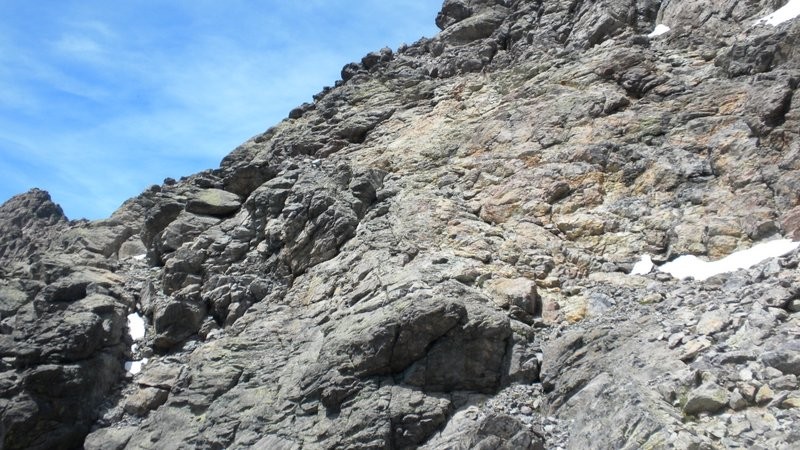 Geröllfeld suchen wir uns den Weg von Steinmann zu Steinmann hinauf zur Pointe des Eboulis 2‘607m, wo wir mit der Route von Haut- Asco zusammen treffen. Den gut sichtbaren roten