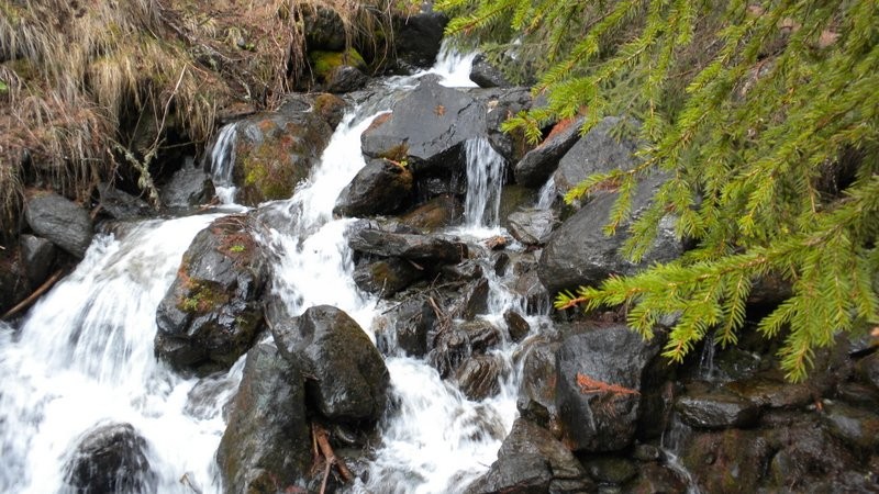 den benötigten Unterstand vor dem kurzen Graupelschauer neben uns haben. Noch einmal können wir einer schön angelegten Bisse folgen und steigen später durch den abwechslungsreichen Wald immer