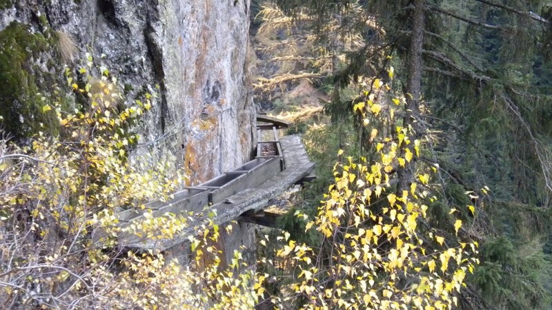 In der Hoffnung heute etwas Sonne zu sehen und nicht im Nieselregen wandern zu müssen, machen wir uns auf ins Wallis. Wegen der Schneefälle bis in tiefe Lagen haben wir uns für den Massaweg ab Blatten bei Naters 1‘327m entschieden und werden sogar kurz mit einem Sonnenstrahl begrüsst als wir aus dem Postauto austeigen. Entlang des Wanderwegs erreichen wir durch den abwechslungsreichen Wald mit seinen vom ehemaligen Gletscher abgeschliffenen Felsen den Stausee bei Gibidum 1‘336m, wo dann der eigentliche Massaweg durch die Massaschlucht führt. Der nun schmaler werdende Pfad führt nur wenig ausgesetzt entlang der Felswände und ist sehr gut mit Ketten gesichert. Schon bald erreichen wir den Aussichtspunkt 1‘274m beim Hohflüewald. Leider will der Nebel nicht ganz weichen und so ist es recht kühl um eine ausgedehnte Pause zu machen. So marschieren wir bald wieder weiter und entschliessen uns spontan Richtung Riederalp auf zu steigen. In Unners Täl 1‘460m verführt uns der Wegweiser mit der Aufschrift Chnebelbrigga zu einer ungeahnten Route zur Riederalp. Ohne nur einen Blick in die Karte zu werfen, marschieren wir los und bemerken bald, dass die Route eine Stufe höher entlang der Überreste der Oberriederi Soune wieder die Massaschlucht hinauf Richtung Stausee führt. Auf dem abwechslungsreichen Weg via Rotbrüch nach Nessul 1‘956m treffen wir mehrere Gämsen an, welche ausserhalb der Schneefelder nach Nahrung suchen. Auch wir stapfen nun durch den Schnee hinauf zur Riederfurka 2‘065m, wo wir nach einer kurzen Pause den Abstieg zur, im Moment noch ruhigen und ziemlich verlassenen, Riederalp 1‘925m hinunter in Angriff nehmen.