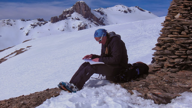 Nach einer ausgedehnten Rast beschliessen Hans und ich noch den Sex Rouge 2‘884m zu besteigen. Wir werden mit einer tollen Aussicht ins Wallis belohnt und auch die Abfahrt ist schön aufgesulzt. Bei einem windgeschützten Felsen machen wir’s uns gemütlich und geniessen den Nachmittag.