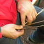 Es gibt noch einen kurzen Marsch zum Hof Uwille, wo uns der blinde Korbflechter Urs Schwarz begrüsst und uns in die Kunst des Weidenflechtens einführt. Er hat verschiedene Weiden für uns im Wasser eingelegt so dass wir uns kleine Blättergeflechte anfertigen können. So erfahren wir eins zu eins wie viel Fingerspitzengefühl zum Weidenflechten verlangt wird! Alle haben Spass.....auch wenn’s nicht gleich so klappen will!