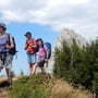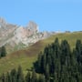 Naja.....zu Beginn war's noch nicht ganz so gastlich....wir wurden mit Regen begrüsst als wir in Jaun aus dem Bus stiegen. Die Badehosen hätten wir besser gleich montiert für unsere nasse Fahrt mit dem unbedeckten Sessellift. Zum Glück konnten wir uns dann ausgiebig aufwärmen in der gemütlichen Gaststube vom Musersbärgli. Der starke Westwind fegte dann auch bald die Regenwolken weg und wir konnten schon bald wieder in den Schweisstropfen baden und dazu die interessante Geologie in den Gastlosen entdecken.