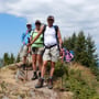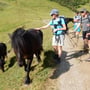 Nach einer angenehmen Nacht und einem stärkenden Frühstück in der schön gelegenen und gemütlichen Grubenberghütte ging's an den Abstieg nach Mittelberg. Auf dem alten Weg via Muttnere konnten meine Schäfchen dann Natur pur auf einem Dschungelpfad hautnah erleben und wurden nach einem schweisstreibenden Aufstieg auf den Hundsrügg mit einer ausgedehnten und aussichtsreichen Rast belohnt. Heiss war's und das kühle Bier lockte.....schnurstraks ging's runter nach Sparenmoos, wo wir mit grossem Glück doch noch unsere trockenen Kehlen benetzten konnten. Das Hotel Sparenmoos hat leider nur noch in der Wintersaison geöffnet! Spontan bevorzugten einige TeilnehmerInnen statt der Abfahrt im heissen Bus die rassige und abkühlende Trottinett-Abfahrt nach Zweisimmen runter.